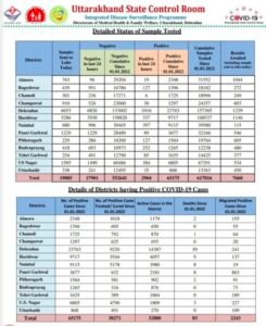 उत्तराखंड में आज घटे कोरोना मामले, राजधानी सहित 3 जिले अब भी कोरोना के हॉटस्पॉट