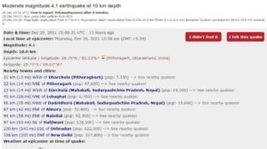 भूकंप के झटकों से डोली पिथौरागढ़ की धरती, 4.1 थी तीव्रता