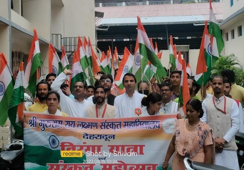 तिरंगा यात्रा झंडा बाजार देहरादून स्थित महाविद्यालय परिसर से भंडारी चौक-हनुमान चौक धामावाला-दर्शनी गेट-लक्खीबाग-सहारनपुर रोड-सहारनपुर चौक से होते हुए गुरुरामराय दरबार साहिब-झंडा साहिब झंडा बाजार होते हुए वापस महाविद्यालय परिसर तक निकाली गई। इस अवसर पर डॉ शैलेंद्र डंगवाल, डॉ सीमा बिजल्वाण, आचार्य मनोज शर्मा , आचार्य नवीन भट्ट, आचार्य नीरज फोन्दनी, आचार्य योगेश सकलानी, शिवम अवस्थी, गौरव जोशी, पूजा, प्रियंका, मनीषा के साथसाथ संस्कृत छात्रसेवा समिति के पदाधिकारीगण भी उपस्थित रहे।