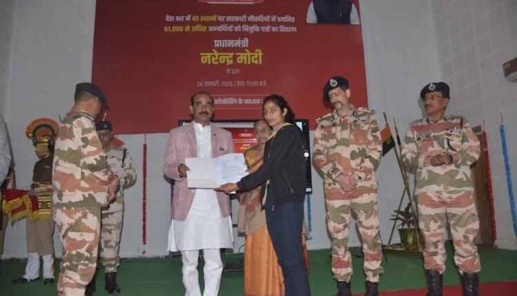 रोजगार मेले के माध्यम से भारत तिब्बत सीमा पुलिस बल के सीमाद्वार कैम्प में विभिन्न केन्द्रीय सशस्त्र पुलिस बल एवं अन्य संगठनों जैसे कि भारत तिब्बत सीमा पुलिस बल, सीमा सुरक्षा बल, केन्द्रीय रिजर्व पुलिस बल, केन्द्रीय औद्योगिक सुरक्षा बल, सशस्त्र सीमा बल, असम राइफल्स, डी.एफ.एस., एफ.एस.आई. अखिल भारतीय आयुर्विज्ञान संस्था (ऋषिकेश) एवं इसरो में चयनित 253 युवाओं को नियुक्ति पत्र वितरित किए गए। इससे पहले प्रधानमंत्री श्री नरेंद्र मोदी द्वारा वर्चुअल माध्यम से युवाओं को उनकी नियुक्ति पर शुभकामनाएं एवं बधाई भी दी गईं। कार्यक्रम के अंत में मुख्य अतिथि श्री टम्टा ने प्रधानमंत्री श्री नरेन्द्र मोदी का नवनियुक्त युवाओं की तरफ से आभार प्रकट किया गया।