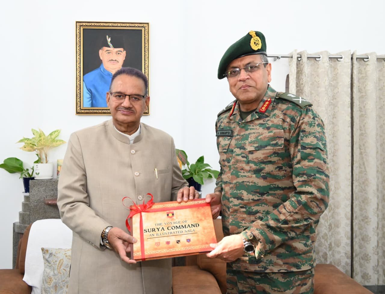 देहरादून। भारतीय सेना की मध्य कमान के आर्मी कमाण्डर लेफ्टिनेंट जनरल अनिंद्य सेनगुप्ता (Army Commander Lieutenant General Anindya Sengupta) ने आज उत्तराखण्ड के सैनिक कल्याण मंत्री गणेश जोशी से उनके शासकीय आवास में शिष्टाचार भेंट की। इस दौरान राज्य में पूर्व सैनिकों के कल्याण, सैन्य परंपराओं के संरक्षण तथा नागरिक-सैन्य समन्वय से जुड़े विभिन्न विषयों पर सकारात्मक चर्चा हुई। इस दौरान आर्मी कमाण्डर ने सैनिक कल्याण मंत्री को सूर्या कमाण्ड की पुस्तक ‘‘द् वॉयेज ऑफ सूर्या कमाण्ड‘‘ भेंट की।