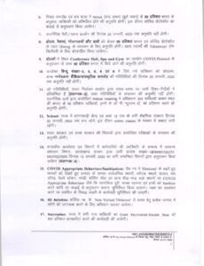 - राज्य के समस्त जिम, शॉपिंग मॉल सिनेमा हॉल, स्पॉ, सैलून, थियेटर ऑडिटोरियम, सभा हाल आदि व इनसे सम्बन्धित समस्त गतिविधियों कोविड प्रोटोकॉल का अनुपालन करते हुए 50 प्रतिशत क्षमता के साथ खुलेंगे।