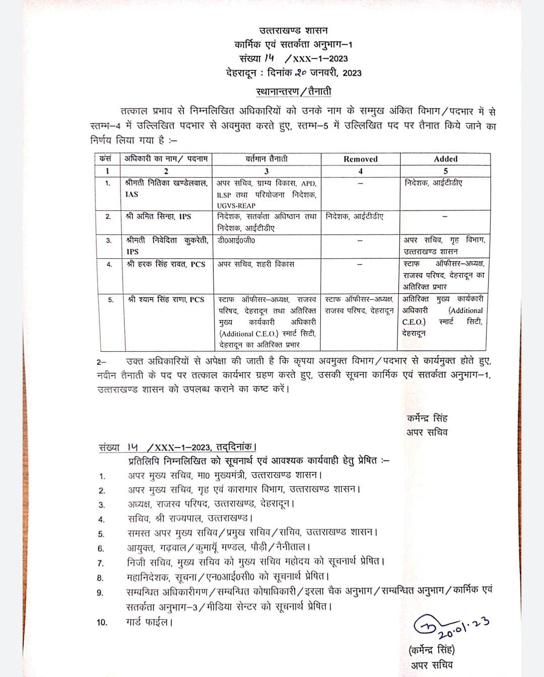 देहरादून। उत्तराखंड से आज की बड़ी खबर आ रही है। शासन ने आज एक आईएएस दो आईपीएस  और दो पीसीएस अफसरों के विभागों में फेरबदल किया है।