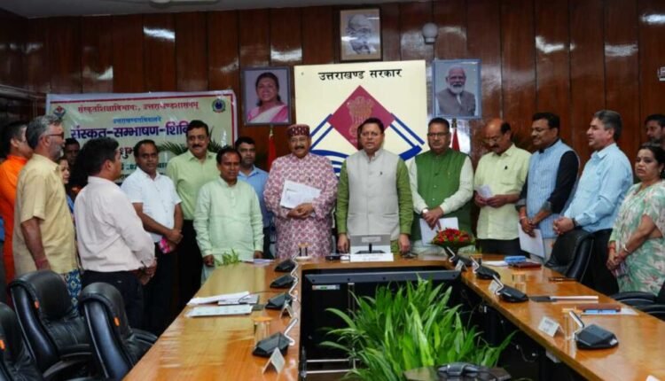 राज्य की द्वितीय राजभाषा संस्कृत के संरक्षण-संवर्धन एवं संस्कृत को जनभाषा बनाने के उद्देश्य से उत्तराखंड सचिवालय परिसर में ‘संस्कृत संभाषण शिविर’ का आयोजन किया जा रहा है। जिसका शुभारम्भ बुधवार को कैबिनेट के बाद मुख्यमंत्री श्री पुष्कर सिंह धामी के द्वारा सभी कैबिनेट मंत्रियों एवं मुख्य सचिव की उपस्थिति में किया गया।