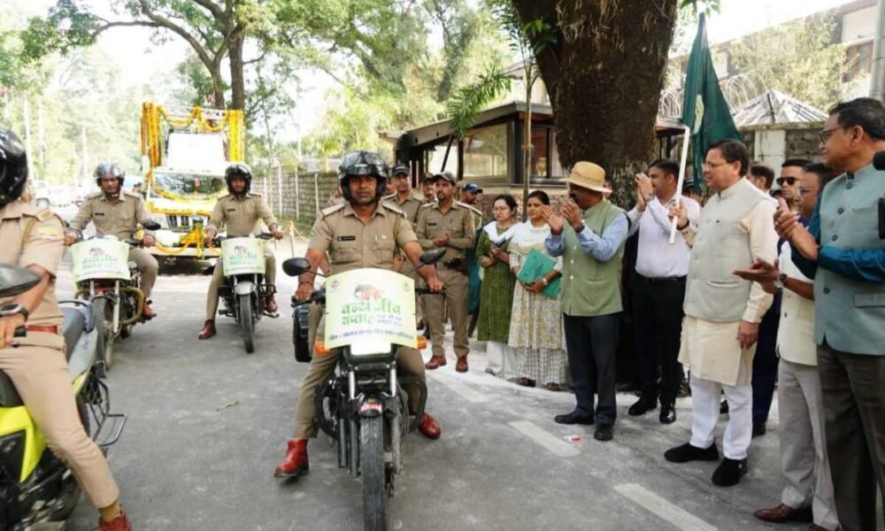 वन्यजीव सप्ताह के शुभारंभ अवसर पर मुख्यमंत्री धामी ने बाइक रैली को हरी झंडी दिखाकर किया गया रवाना