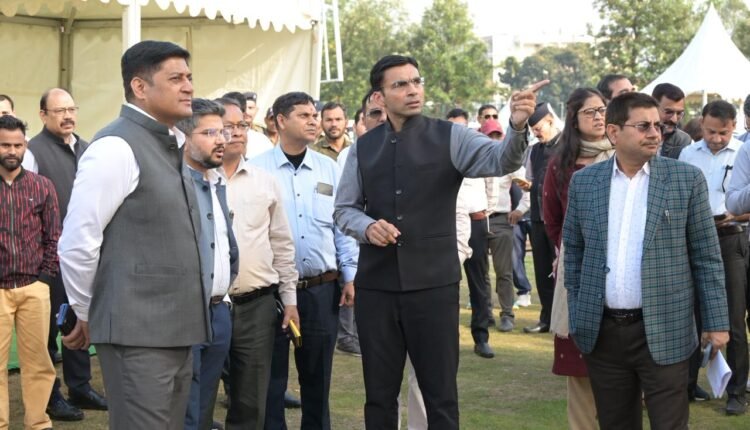इस दौरान सभी नोडल अधिकारियों के साथ व्यवस्थाओं की समीक्षा करते हुए आयुक्त ने समयबद्ध एवं सुव्यवस्थित तैयारी सुनिश्चित करने के निर्देश दिए। आयुक्त ने अधिकारियों को अपने दायित्वों का गंभीरता से निर्वहन करते हुए बेहतर समन्वय स्थापित करने पर बल दिया। निरीक्षण के दौरान मुख्य मंच, बैठने की व्यवस्था, बैरिकेडिंग, प्रकाश, एलईडी स्क्रीन, साउंड सिस्टम, यातायात एवं पार्किंग व्यवस्थाओं का गहन अवलोकन किया गया। उन्होंने निर्देशित किया कि मिनट-टू-मिनट कार्यक्रम के अनुरूप सभी व्यवस्थाएं सुनिश्चित की जाएं तथा विद्युत एवं साउंड सिस्टम के लिए पर्याप्त बैकअप रखा जाए।साथ ही विभागीय अधिकारियों को निर्देश दिए गए कि कार्यक्रम स्थल पर ही स्वास्थ्य परीक्षण, टीकाकरण, दिव्यांग प्रमाण पत्र, सहायक उपकरण वितरण एवं अन्य आवश्यक प्रमाण पत्रों के निर्गमन की समुचित व्यवस्था की जाए।