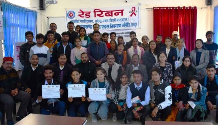 नरेन्द्र नगरI धर्मानंद उनियाल राजकीय महाविद्यालय मे विश्व एड्स दिवस के अवसर पर राष्ट्रीय सेवा योजना/रेड रिबन क्लब और जिला विधिक सेवा प्राधिकरण टिहरी गढ़वाल के संयुक्त तत्वधान मे एक विचार गोष्ठी का आयोजन किया गयाI कार्यक्रम का शुभारंभ अध्यक्ष तहसील विधिक सेवा प्राधिकरण शम्भू नाथ सिंह सेठवाल, जेo एमo नरेन्द्रनगर के प्रतिनिधि के रूप मे उपस्थित पैनल लॉयर, डीएलएसए जगवीर राणा, सचिव, तहसील विधिक सेवा प्राधिकरण एवं तहसीलदार नरेन्द्रनगर अयोध्या प्रसाद उनियाल, श्री देव सुमन राजकीय चिकित्सालय नरेंद्रनगर की डॉo दीपाली एवं प्राचार्य प्रो. राजेश कुमार उभान ने माँ सरस्वती के चित्र पर पुष्प अर्पित और दीप प्रज्वलन के साथ कियाI
