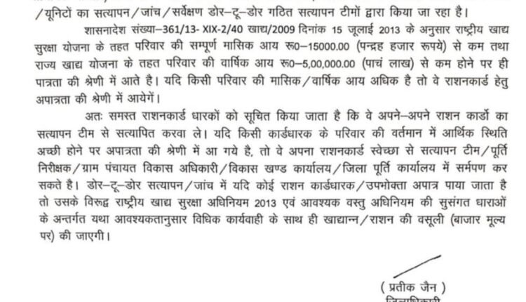यह अभियान पात्र व्यक्तियों तक योजनाओं का लाभ पहुंचाने और अपात्रों की पहचान के उद्देश्य से संचालित किया जा रहा है। सभी नागरिकों से ईमानदारीपूर्वक सहयोग की अपेक्षा की जाती है ताकि जनहितकारी योजनाओं का लाभ वास्तव में जरूरतमंदों तक पहुंचे।