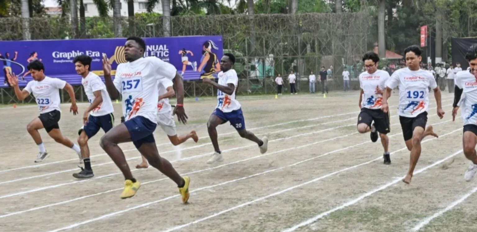 ग्राफिक एरा डीम्ड यूनिवर्सिटी से बॉयज श्रेणी में भावेश भाटी, प्रांजल रावत, सौरभ रावत, आर्यन बर्थवाल, अमामरू बोस्को और गर्ल्स श्रेणी में शगुन सिंह, प्रेरणा थापा, लक्ष्मी रावत, पलविंदर कौर, अनुष्का पंत अपने-अपने मुकाबलों में अव्वल रहें। ग्राफिक एरा हिल यूनिवर्सिटी से बॉयज श्रेणी में मयंक, अंकित रावत, विजय नेगी, अमित, अंकित कुमार और गर्ल्स श्रेणी में रक्षिता, काजल, अंजली, कृतिका कनिष्का अपने-अपने मुकाबलों में सर्वश्रेष्ठ प्रदर्शन किया । प्रतियोगिताओं में ग्राफिक एरा के विदेशी छात्र छात्राओं ने भी सभी खेलों में बड़े उत्साह से भाग लिया। डा. कमल घनशाला ने 100 मीटर, 200 मीटर, 400 मीटर दौड़, 800 मीटर व 1500 मीटर रेस, लॉन्ग जंप, शॉट पुट और रिले दौड़ जैसी प्रतियोगिताओं में उत्कृष्ट प्रदर्शन के लिए विजेता छात्र-छात्राओं को मेडल प्रदान कर सम्मानित किया।
