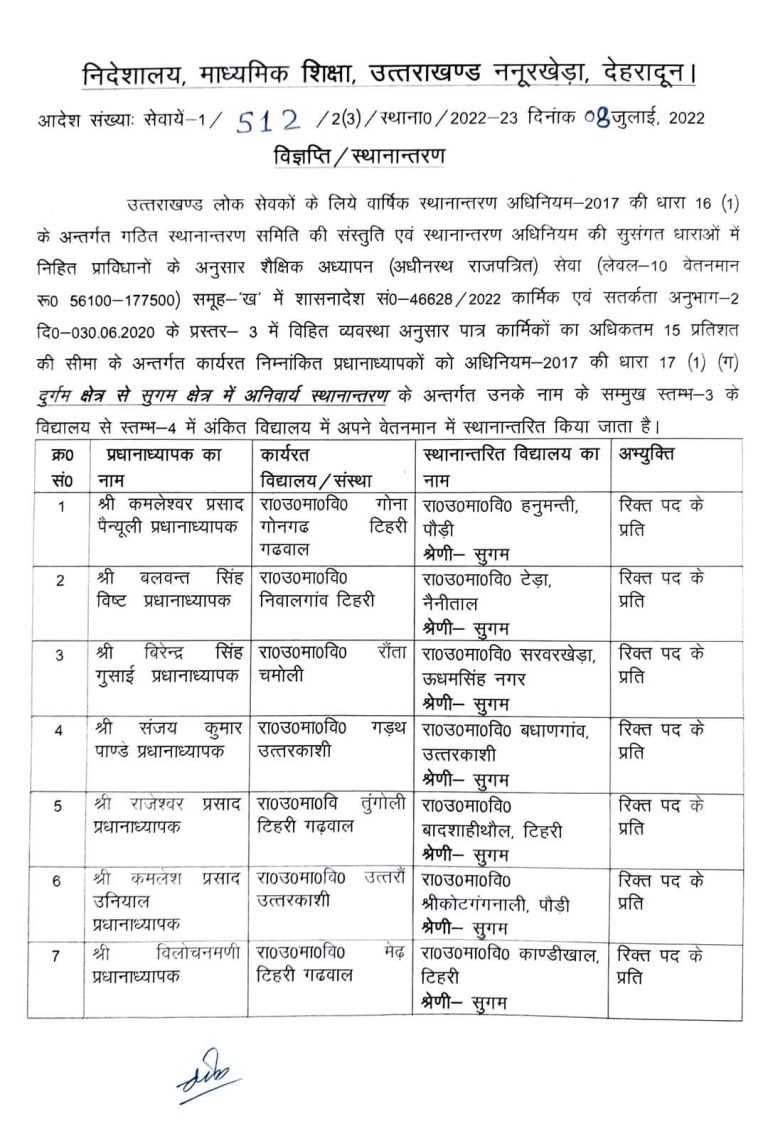 देहरादून। उत्तराखंड में ट्रांसफर का दौर जारी है। हाल ही में शिक्षा विभाग में कनिष्ठ सहायकों के ट्रांसफर हुए तो अब हेडमास्टरों के बंपर तबादले (transfer) कर दिए गए है। इस सम्बन्ध में उत्तराखंड माध्यमिक शिक्षा देहरादून के संयुक्त निदेशक अम्बादत्त बलोदी की ओर से आदेश जारी किए गए हैं।