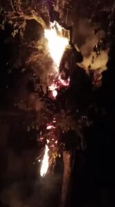 शॉर्ट सर्किट के चलते बिजली की लाइन टूटी, धूँ-धूँकर जल उठा पेड़