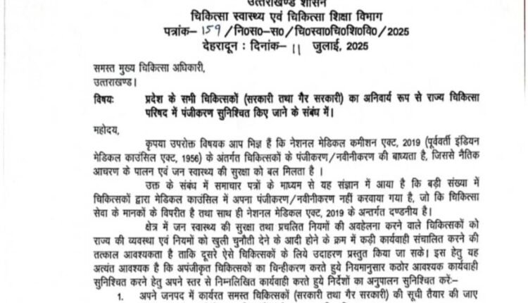 उत्तराखंड में बिना पंजीकरण प्रैक्टिस कर रहे डॉक्टरों पर लगेगी लगाम, स्वास्थ्य सचिव ने जारी किया सख्त आदेश