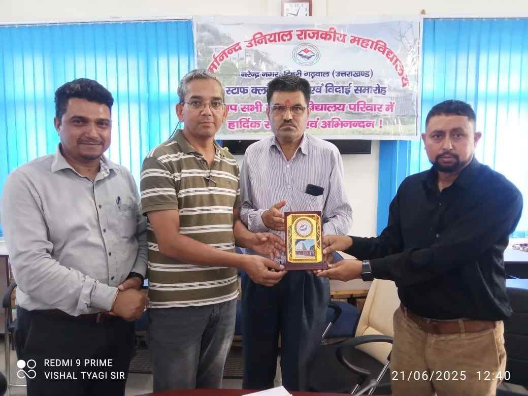 इस अवसर पर स्टाफ क्लब की नई कार्यकारिणी का गठन भी किया गया जिसमें सर्वसम्मति से संरक्षक कॉलेज प्राचार्य यू सी मैठाणी उपाध्यक्ष पद पर डॉ सुशील कुमार कगडियाल, कोषाध्यक्ष पद पर गणेश चंद्र पांडे, सह-सचिव, रंजन जोशी एवं सदस्यों के रूप में डॉ मनोज फोन्दणी, डॉ जितेंद्र नौटियाल, गिरीश जोशी, अनूप नेगी, अजय पुंडीर का मनोनयन किया गया। इससे पूर्व स्टाफ क्लब द्वारा उत्तरकाशी से स्थानांतरित होकर आये रसायन विज्ञान विभाग के प्राध्यापक डॉ कमल कुमार बिष्ट को प्राचार्य एवं स्टाफ क्लब के सचिव डॉ राजपाल रावत द्वारा स्मृति चिन्ह देकर सम्मानित किया गया।