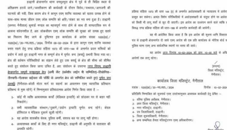 हल्द्वानी में कर्फ्यू को लेकर नया आदेश जारी, पढ़िए क्या कुछ हुए आदेश…