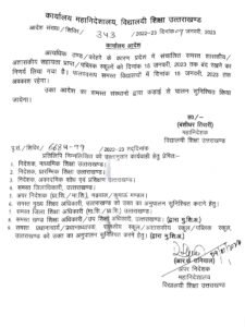 उत्तराखंड स्कूल शिक्षा निदेशालय ने आदेश जारी कर राज्य के सभी सरकारी तथा प्राइवेट विद्यालयों में 15 जनवरी 2023 तक शीतकालीन अवकाश घोषित किया है। राज्य में 16 जनवरी 2023 से ही विद्यालय दोबारा खोले जाएंगे।