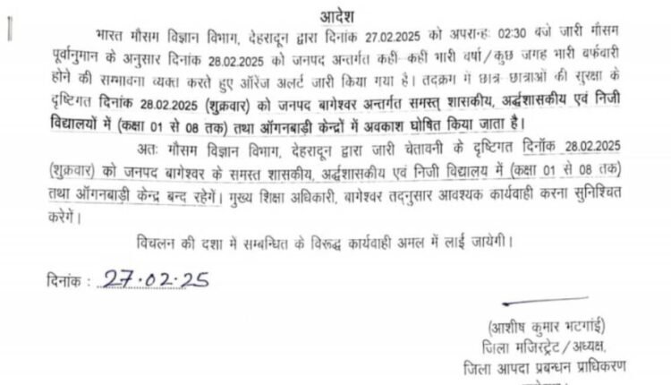 मौसम विभाग द्वारा जारी अलर्ट को देखते हुए बागेश्वर जिले में कल बंद रहेंगे स्कूल…