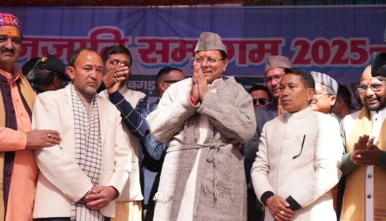 चमोली: मुख्यमंत्री पुष्कर सिंह धामी ने शनिवार को जनपद चमोली के बिरही (बेडूबगड़) में नीति-माणा जनजाति कल्याण समिति की ओर से आयोजित तीन दिवसीय जनजाति समागम 2026 के समापन कार्यक्रम में प्रतिभाग किया। इस अवसर पर मुख्यमंत्री ने नीति घाटी भोटिया जनजाति के शीतकालीन प्रवास एवं अन्य भूमि संबंधी मामलों का निस्तारण किये जाने, बेडूबगड़ भोटिया पड़ाव में सामुदायिक भवन का निर्माण, स्व. श्रीमती गौरा देवी जी की प्रतिमा एवं पार्क निर्माण किये जाने, बैरासकुंड मंदिर का सौंदर्यीकरण किये जाने, बेडूबगड़ पड़ाव की भूमि को सुरक्षित करने के लिए कार्य किये जाने की घोषणा की।