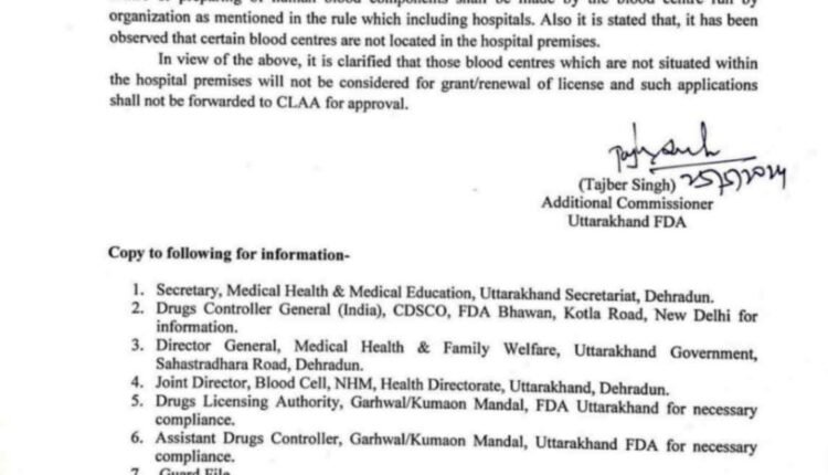 सख्ती: उत्तराखंड में अस्पतालों के बाहर चल रहे ब्लड बैकों का लाइसेंस नहीं होगा रिन्यू, जानिए पूरी जानकारी..