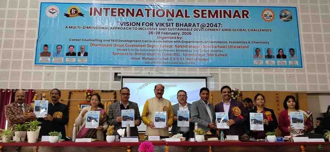 गुरुवार से राजकीय महाविद्यालय नरेंद्र नगर में ‘विजन फार विकसित भारत 2047’ पर तीन दिवसीय अंतरराष्ट्रीय संगोष्ठी का आयोजन किया जा रहा है। जिसमें राष्ट्रीय एवं अंतर्राष्ट्रीय स्तर से लगभग 300 प्रतिनिधियों ने हाइब्रिड मोड में अपनी प्रतिभागिता के लिए नामांकन किया है।