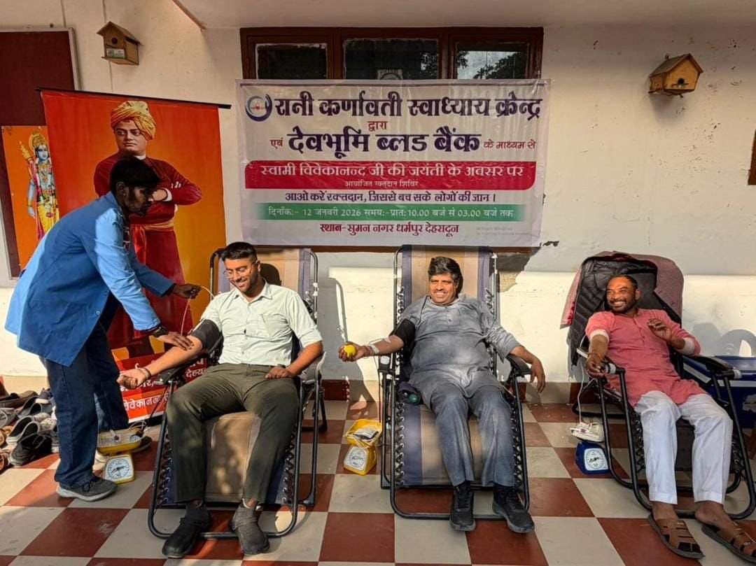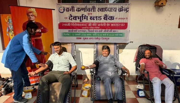 देहरादून। जनकल्याण न्यास (Public Welfare Trust) द्वारा संचालित स्वाध्याय केंद्र रानी कर्णावती के द्वारा स्वामी विवेकानंद जी की 162 जयंती के अवसर पर ,सामान्य ज्ञान प्रतियोगिता तथा अवसर पर जन कल्याण न्यास द्वारा रक्त दान शिविर का भी आयोजन किया गया। धर्मपुर संघ कार्यालय महानगर में, जिसमें युवाओं ने बढ़ चढ़कर प्रतिभाग करके रक्त दान किया आयोजित कि गई परीक्षा के उपरांत शीर्ष दस परीक्षार्थियों को पुरस्कृति किया गया