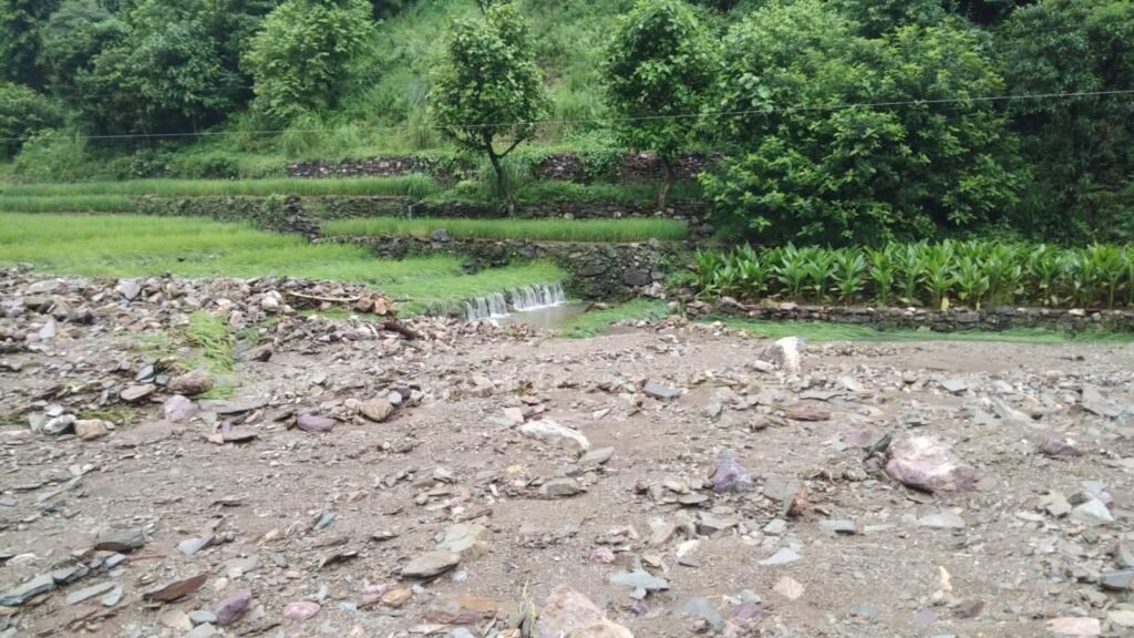 गंगलसी गांव मैं धान की फसल चढ़ी आपदा की भेंट