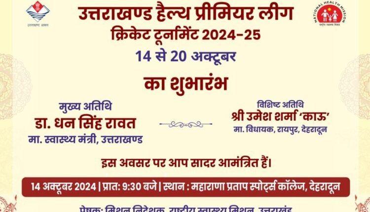 देहरादून । राष्ट्रीय स्वास्थ्य मिशन, स्वास्थ्य विभाग उत्तराखंड द्वारा एक अनूठी पहल के तहत राज्य में पहली बार उत्तराखंड हैल्थ प्रीमियर लीग (यू.एच.पी.एल.) क्रिकेट टूर्नामेंट का आयोजन 14 से 20 अक्टूबर तक महाराणा प्रताप स्पोर्ट्स कॉलेज में किया जा रहा है। इस टूर्नामेंट का उद्देश्य खेल के माध्यम से विभिन्न स्वास्थ्य विषयों पर जागरूकता फैलाना है।