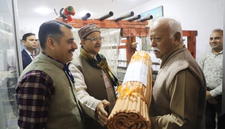 देहरादून। देश के पहले गौ अनुसंधान एवं प्रशिक्षण केंद्र के उद्घाटन के साथ ही राष्ट्रीय स्वयंसेवक संघ के सर संघचालक मोहन भागवत ने दीनदयाल बुनकर केंद्र का भी लोकार्पण किया। इस दौरान उन्होंने बुनकर केंद्र द्वारा किए जा रहे कार्यों की सराहना की। साथ ही केंद्र का संचालन कर रहे राष्ट्रीय पुरस्कार विजेता वीरेंद्र दत्त सेमवाल को बधाई भी दी।