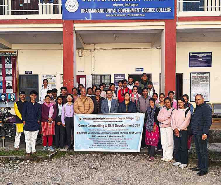 नरेंद्रनगर। धर्मानंद उनियाल राजकीय महाविद्यालय, नरेंद्रनगर के करियर काउंसलिंग एवं स्किल डेवलपमेंट सेल एवं एनएसएस के अंतर्गत, ग्राफिक एरा हिल विश्वविद्यालय, देहरादून के सहयोग से “डिजिटल साक्षरता और साइबर सुरक्षा जागरूकता” विषय पर एक दिवसीय कार्यशाला आयोजित की गई।