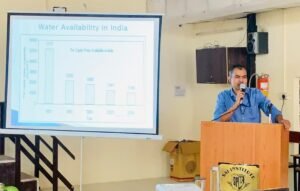 कार्यक्रम में दूसरा तकनीकी व्याख्यान यूसर्क के वैज्ञानिक डॉ भवतोष शर्मा ने “वाटर रिसोर्सेस एंड ह्यूमन हेल्थ” विषय पर व्याख्यान दिया। डॉ शर्मा ने उपस्थित प्रतिभागियों को भारत के विभिन्न जल संसाधनों के बारे में विस्तार से बताते हुए जल संसाधनों के वर्तमान स्वरूप, उनकी स्थिति व वैज्ञानिक प्रबंधन के बारे में विस्तार से बताया। उन्होंने कहा कि पृथ्वी ग्रह के संरक्षण से इस पर निवास करने वाले सभी जीवों का संरक्षण होगा। इसलिए जल संसाधनों के उचित प्रबंधन, संरक्षण, वर्षाजल संचयन आदि से आने वाले समय में जल की बढ़ती हुई मांग के अनुरूप उपलब्धता सुनिश्चित की जा सकती है l भूजल रिचार्ज की विभिन्न विधियों को अपनाकर, कृषि, उद्योग एवं अन्य घरेलू कायों में मिताव्यता के साथ जल के प्रयोग के साथ भूजल प्रबंधन किया जा सकता है। डॉ शर्मा ने जल के विभिन्न पैरामीटर्स की जानकारी देते हुए उनकी जल में अधिकता होने अथवा कमी होने पर स्वास्थ्य पर प्रभाव के बारे में विस्तार से बताया।